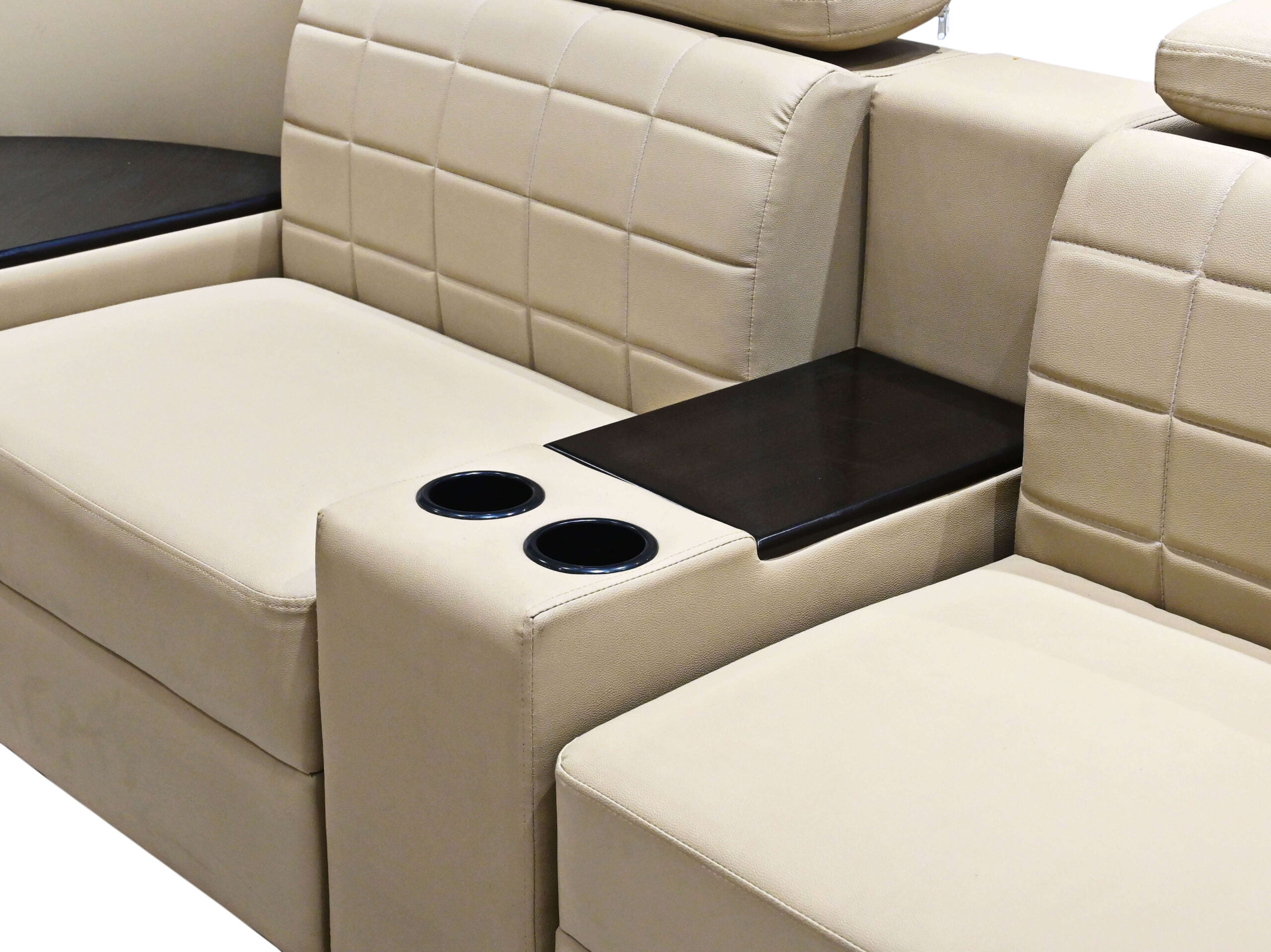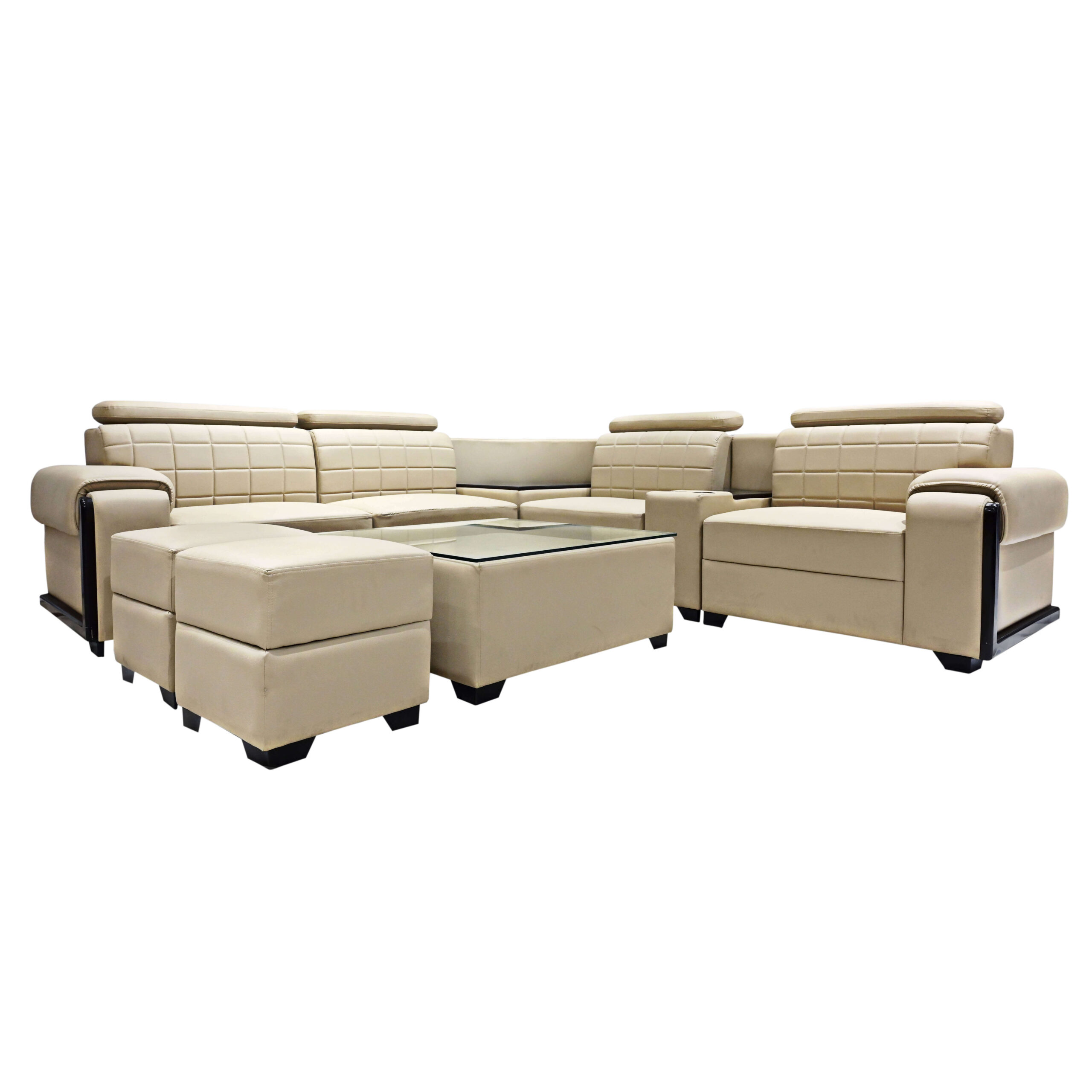 Its comfortable for 7 peoples , material used – 3 Inch foaming , wood plus board and available in various colors and fabric .