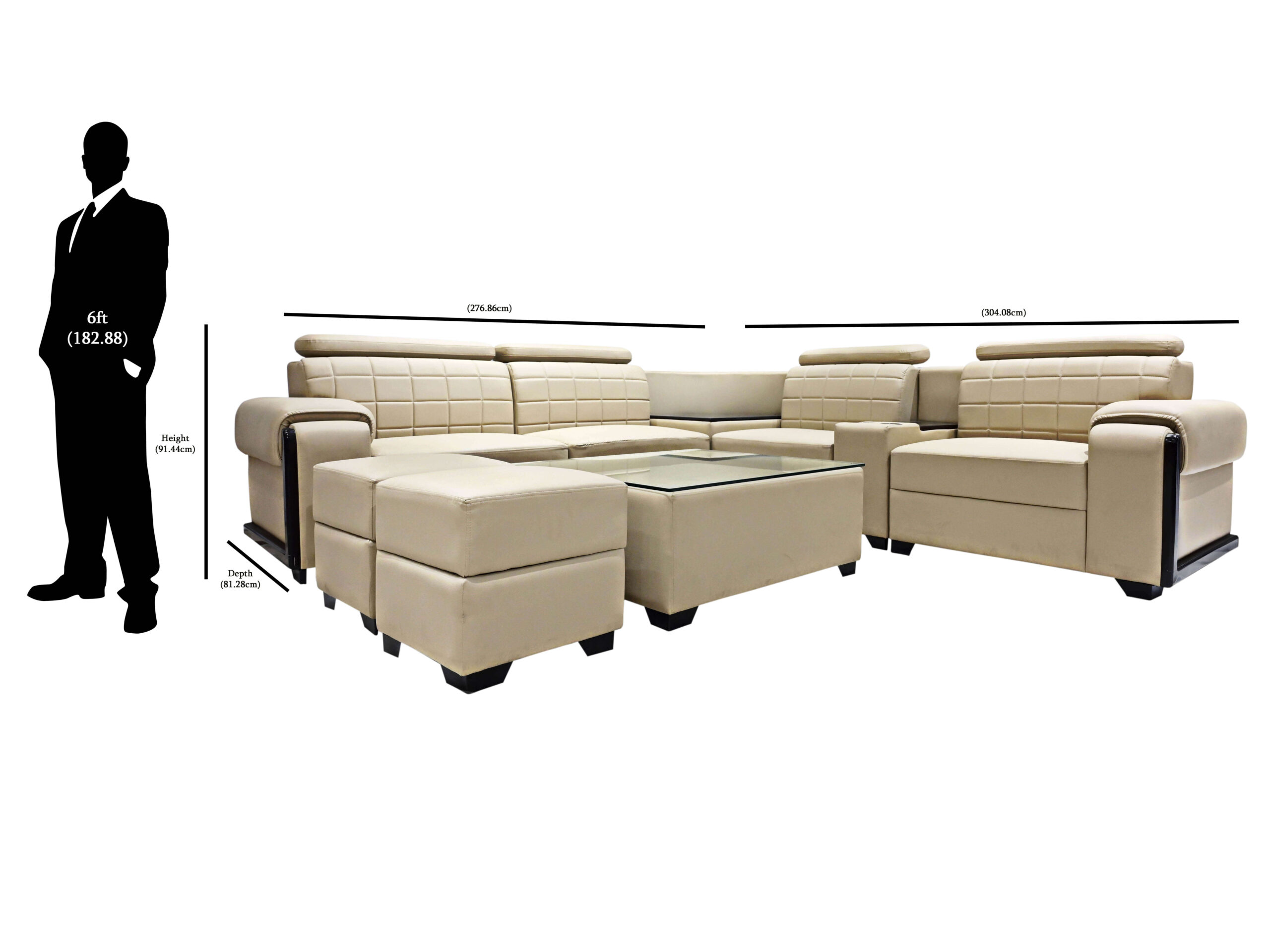 Dimensions: Sofa: H 91.44x W 276.86x D 81.28; (all dimensions are in cm)